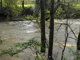 K and I decided to walk up as far as the gates to the Big House to see just how high it was further down, where the river narrows and goes through a rocky canyon. Huge boulders I normally stand on to take scenic pictures were completely under water and the coffee-coloured water was hurling itself downstream, almost up to the top of the banks. It can't have seemed too threatening though as our neighbours living on the river bank hadn't moved their car to higher ground.