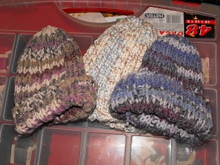 Let's see--before I got on this rant, I meant to admire your handiwork--I'm in awe of those who can follow a chart and create cross-stitch treasures--and the knitted hats are such friendly and wearable pieces. I sometimes wish I had some hand work going for times when I don't want to hunch over the sewing machine.