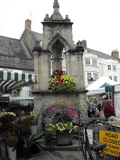 We began our holiday last week (which was partly a working one, as we were house-sitting and animal-sitting for a friend) by stopping off in Wells on the way. OH wanted to explore after I had told him how beautiful the city and Cathedral were from my visit back in the spring. It didn't disappoint and to our delight, it was the day for a street market which had some wonderful stalls. We wished we'd had the money to buy some of the gorgeous spun glass balls and baubles, and loved an antiques/collectables stall where we did part with a little cash to start off some Christmas shopping (just a stocking filler). There was a stall selling wonderfully fresh pots of herbs (mine have all gone totally over now) and other stalls selling local produce.
