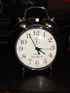 This morning we had a wander round the car boot sale, which was just an echo of the size it was last week, when I had NEVER seen so many stalls or buyers on that site. Today I really struck lucky and my cosmic ordering machine delivered me a brand spanking new British-made (what a rarity in this day and age) old-fashioned design alarm clock for just 50p! I nearly bit the guy's hand off . . . It's a sort of clotted cream colour on the body, and is made in Towcester, which is where my mum's rellies came from, the lace-making ones.