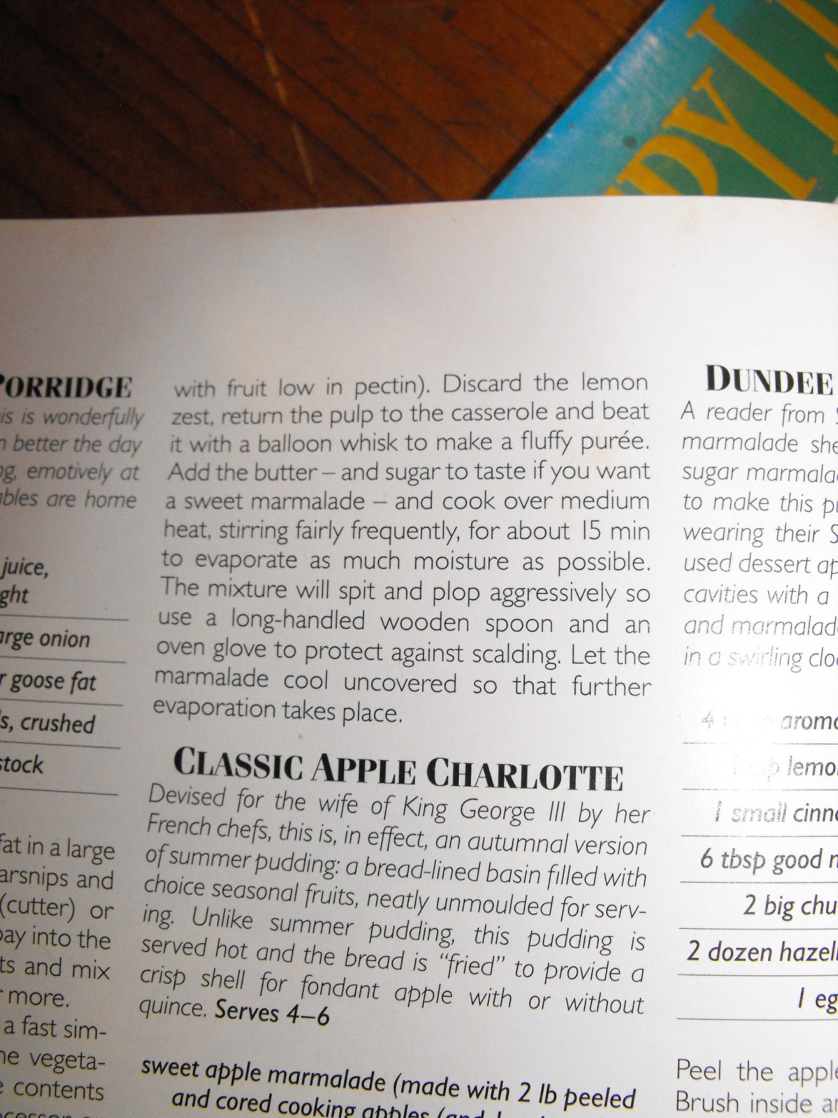 One of them was Apple Marmalade, which can be used as a glaze, a filling for cakes, or as pectin for jam making. It was very simple to make in the oven. You should be able to read most of the instructions, if you can't and would like the missing bit (under the glare from the camera flash) let me know.