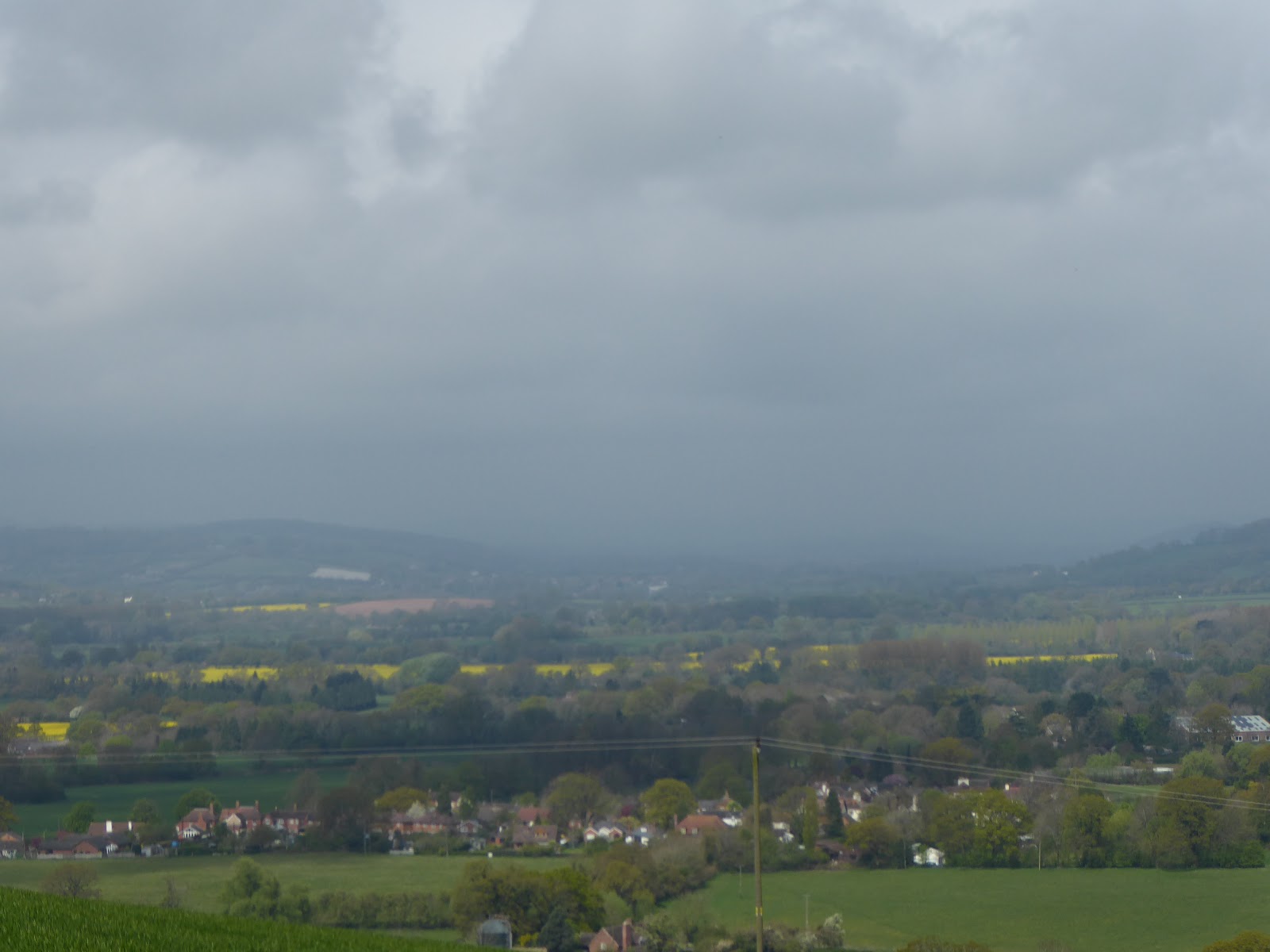 Above and below are photos across Malvern Vale. a little fuzzy probably as I wasn't letting the camera focus properly before I took a photo. Tiredness (I hadn't slept the night before, which was par for the course!) The bright yellow fields of Oilseed Rape stood out well.