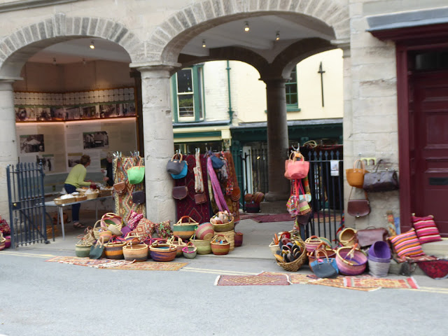 We had to meet up with someone in Hay-on-Wye last Saturday. Here is the Cheese Market with a colourful display of baskets, and some really delicious baked goods inside too - artisan bread as well as "buns". The castle never changes . . .