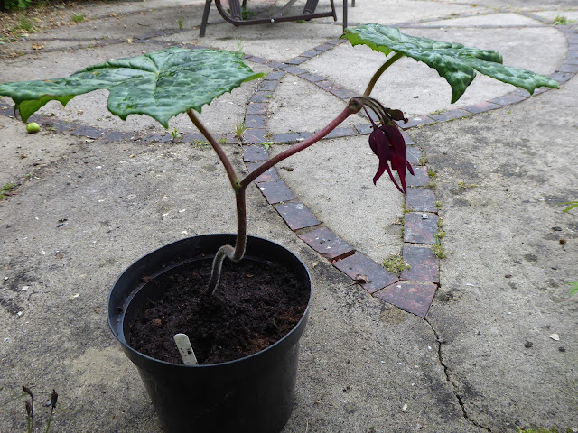 I treated myself to this unusual plant at the Car Boot Sale last week ; - Podophyllum "Spotty Dotty". It likes shade. It has been transplanted into a bigger pot now it's home rather than being planted in the ground - you never know, like the roses it may eventually travel with us to a new home. I live in hope.