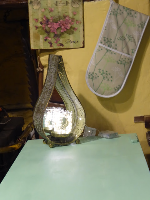 I went looking for the right table lamp for the kitchen today. There was nothing I saw that seemed right - most were too tall or too modern or cheap-looking or just not very nice. Then I saw this which is to take a night light, and it was perfect - I loved the Paisley shape, and the mirror-back and it is even greeny-brass and looks old like it has slight Verdigris. It hangs on the wall too, but I shall just have it sat on the counter I think. I went looking for LED lights and these little ones are just perfect - a coil of wire with tiny bubbles of light in them.