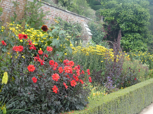Gorgeous hot herbaceous borders. I think the half-timbered cottage is a holiday cottage - sure I recognise it from years of perusing the NT holiday cottage brochure. I definitely recognise the red dahlia with bronze foliage as one of the Bishop’s Children. My clump from seed in 2018 is glowing in the kitchen garden. I cut from it nearly every day and combined with golden Stipa, yellow crocosmia, maroon Panicum, pink sedum. Viburnum opulus in my biggest green Denby jug it looks wonderful on the kitchen table. And the bees love it too. So sorry to hear about the ups and downs. Tis the same here but to a lesser extent but we are going out now with a picnic to make use of our brand new Historic Houses Association membership by visiting West Dean gardens. I have had a bumper harvest this morning of courgettes, purple beans, tomatoes, raspberries and a lettuce and I hope to get the mower out later today to do an hour of mowing between tea and supper. Take care BB. Sarah x