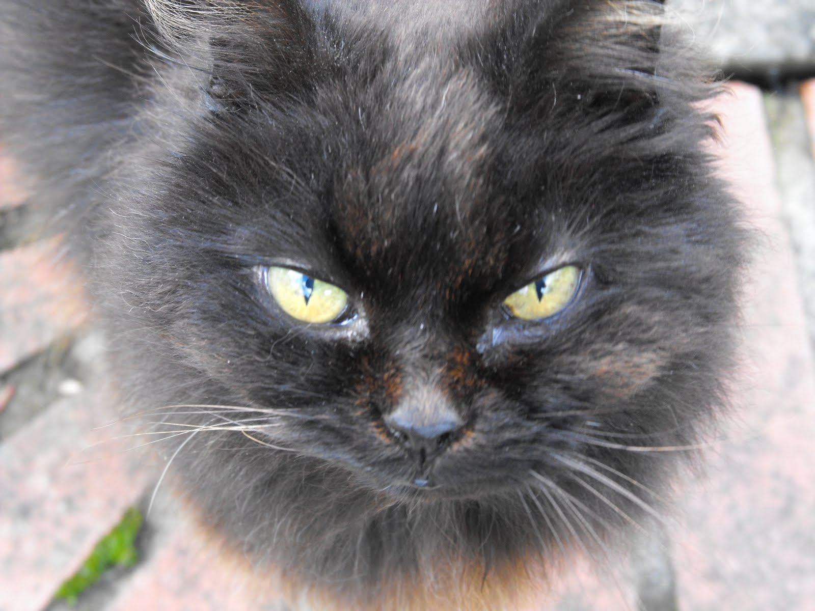 This is little Banshee, who I found as a tiny kitten on the side of the lane one day. She is a quirky little madam and my husband's favourite. He gives in every time for her loud demands for Cheese - and QUICK about it! She is very imperious, and has never grown beyond the size of a six month old kitten, so is a wee girly.