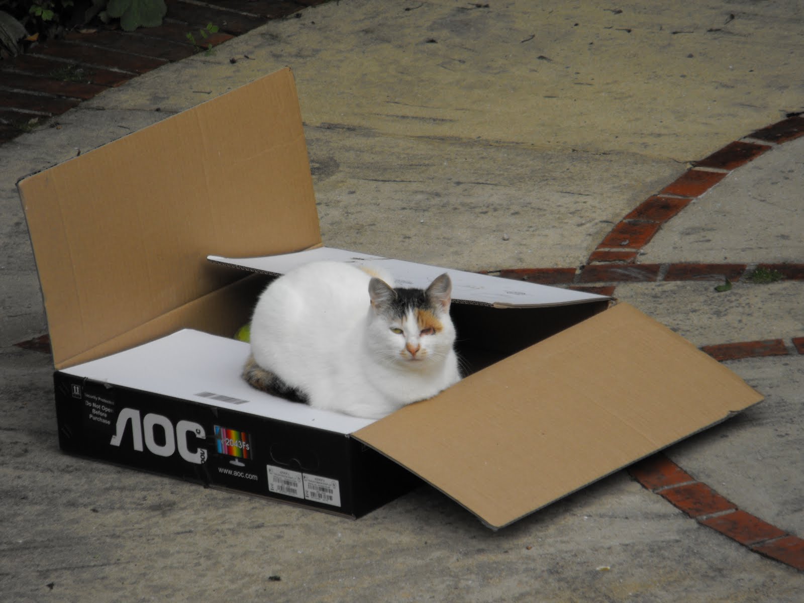 Cat in a box. Miffy, mum to the boys, proving that Every Box Attracts Cats! This one has apples in it . . .