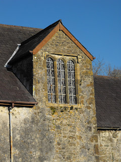 This very old church window appears to have had the wall above it extended at some point (or perhaps just replaced).