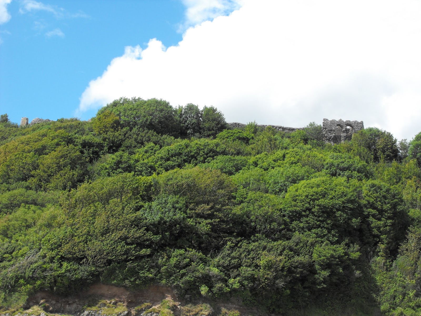 Looking up at Llansteffan Castle. Neither of us could face the prospect of climbing up there, and we settled for a beach stroll rounded off with sitting on a bench with an ice cream.