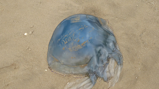 Bright Blue Jellyfish (porpita porpita) - there were lots of them on the beach, but not as many as Saturday when Tam was down there - she said there were masses then, but I guess the tide has recycled a few.