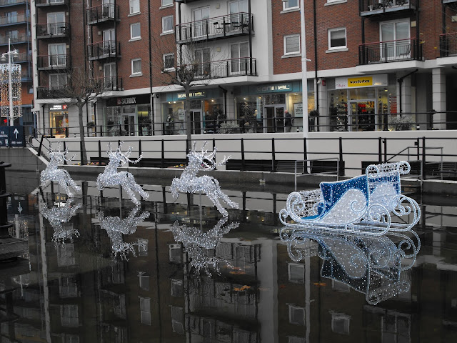 G is based in Portsmouth now, and below are a few photographs from inside Gunwharf Quays. As you can see, it is all dazzling with Christmas lights - the Father Christmas and his reindeer were spectacular at night.