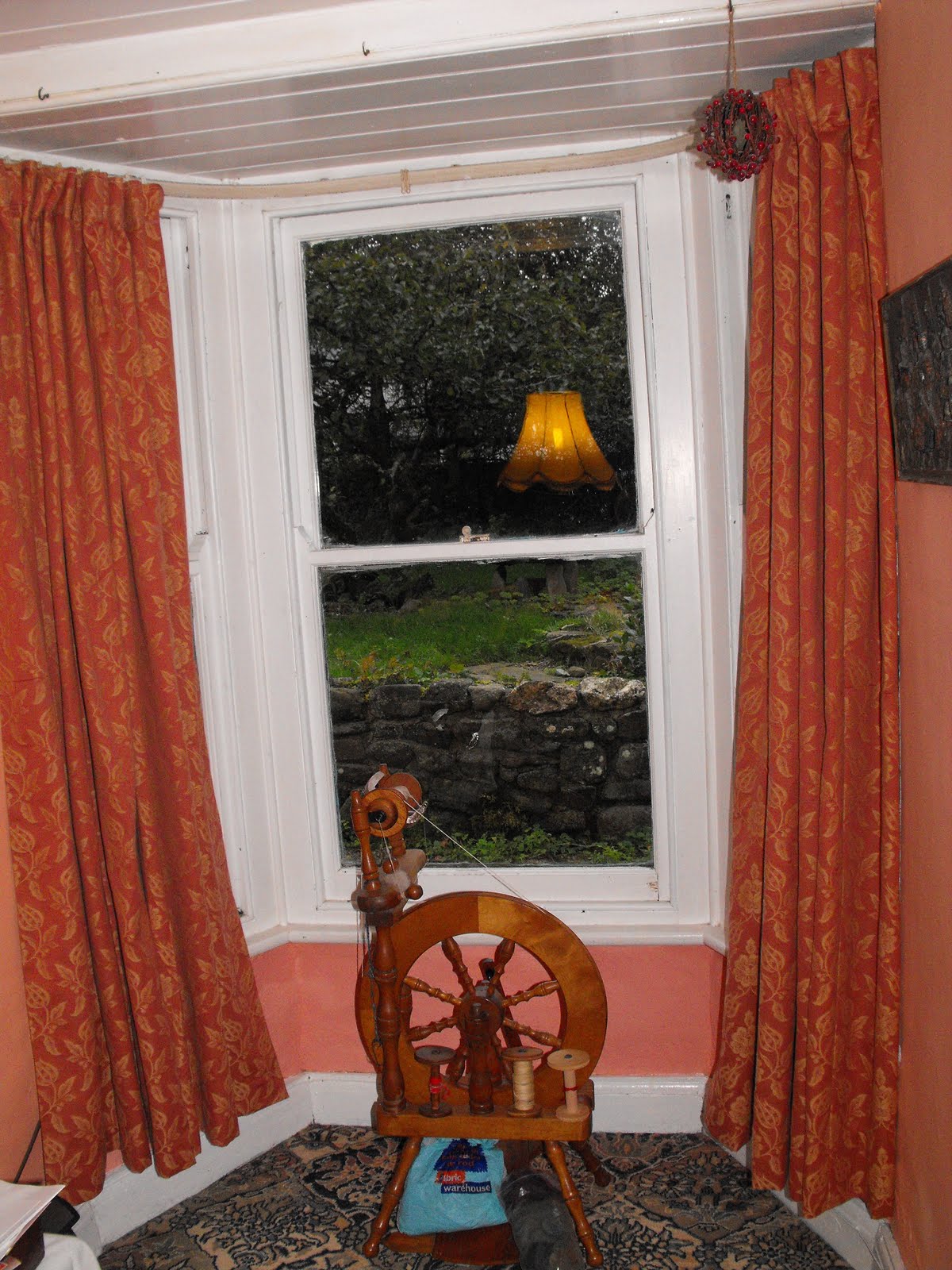 Whilst I was at it, I put a woollen lining on some blue curtains for the kitchen which I had picked up cheaply at the car boot sale. The lining was a whole roll given me by a neighbour, left over since they had wound up their office seating manufacturing business. Then I took the summer sitting room curtains and turned a faded edge and blind-hemmed it, so they are ready to go next year again. I've also started making some fresh cushion covers, one utilising a pretty embroidered tray cloth (!) and the other using left-over orange curtain material . . .