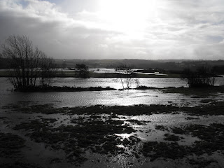 The Towy had burst its banks already, and the nearer we got to Carmarthen, the worse it was looking. At Whitemill I got some stunning pictures which were almost monochrome, and as the sun tried to break through, I aimed the camera straight at it and WOW! that's one to be blown up and framed I think . . .