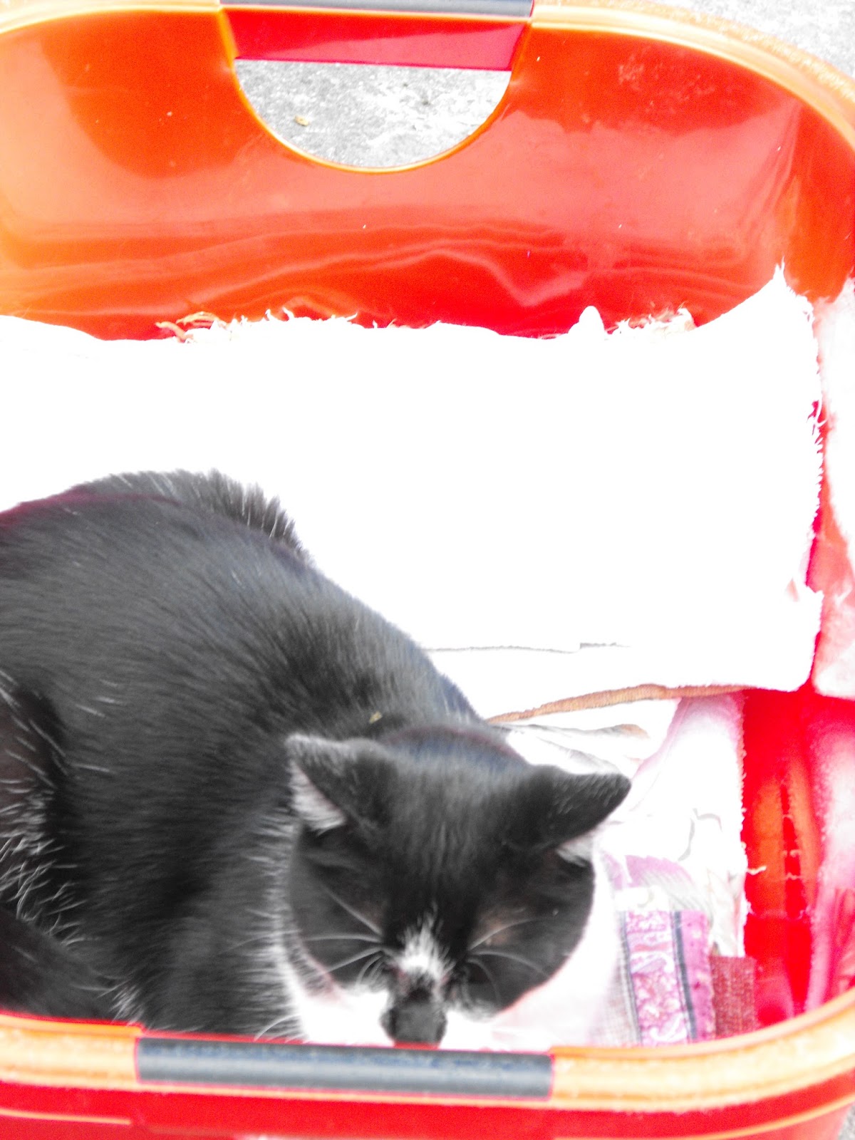 I was unpegging the cat cushion covers from the line and putting them in the laundry basket when Mama's Little Helper decided to come along and check out the nice bed I'd made for him . . .