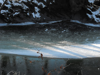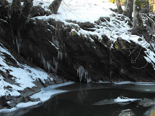 Our next door farmer reported that the night before last it was minus 15 by his milking parlour. I believe him. I also believe it was even colder here last night, as when we walked down by the river today, this is what we saw. Believe me, it froze last January, but NOTHING as bad as this or so quickly:
