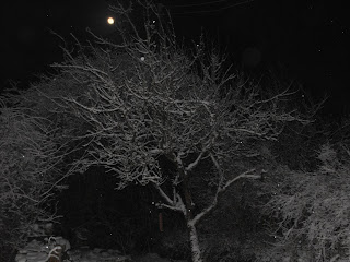 To be honest, we were snowed in after the first flurry around teatime yesterday, as without any grit in the bin at the top of our hill, trying to get out would have been difficult even then - as return UP the hill would be impossible. Think Cresta Run here . . . In the event, we have had about 3 inches of snow and whilst it is very beautiful, I am a little worried that this is going to go on for a week or more and then we will have to try and walk to the nearest shop for fresh fruit/veg and cat biccies (about a 7 mile round trip). Still, have walking boots and rucksack, will travel . . . Mind you, plenty of neighbours have 4x4s so will doubtless give us a lift if they're going to town. All the time we had our 4x4 we never had to use it in anger, then we sold it and have had two snowy/icy winters on the trot!