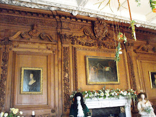 Faceless facsimiles of the bride and groom are stood either side of the fireplace, and you cannot help but gaze in amazement at the detailed carvings on the walls.  I know that Grinling Gibbons often carved in Limewood, so it's quite possible that this panelling has Limewood carvings too.