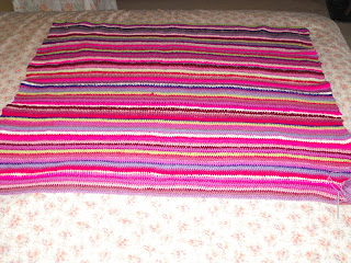 I have not been idle whilst I have been laid up, and have now done more than a hundred rows on my Sweetpea Granny Stripes lap warmer for the winter. I am debating whether to carry on with it and make it long enough to go across the end of the bed, but I think I will stop now and edge it. I am just printing off some "how to's" from Lucy's wonderful Attic 24 blog. I will start edging it today I think, and then I want to get started on trying my hand (and brain!) at a Ripple cushion. Watch this space.
