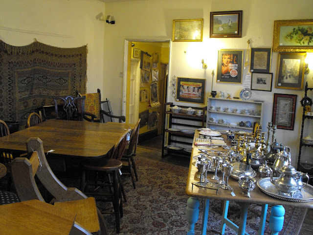 After lunch, in a lovely old pub called the Rose and Crown which was hidden away behind the main street in Ludlow - and which served sandwiches of such monumental proportions we didn't need to eat for a week afterwards! - we dropped back down to Leominster, where there are lots of antique shops. Voiceover by David Attenborough: Ah, the antique dealers in their natural habitat . . .