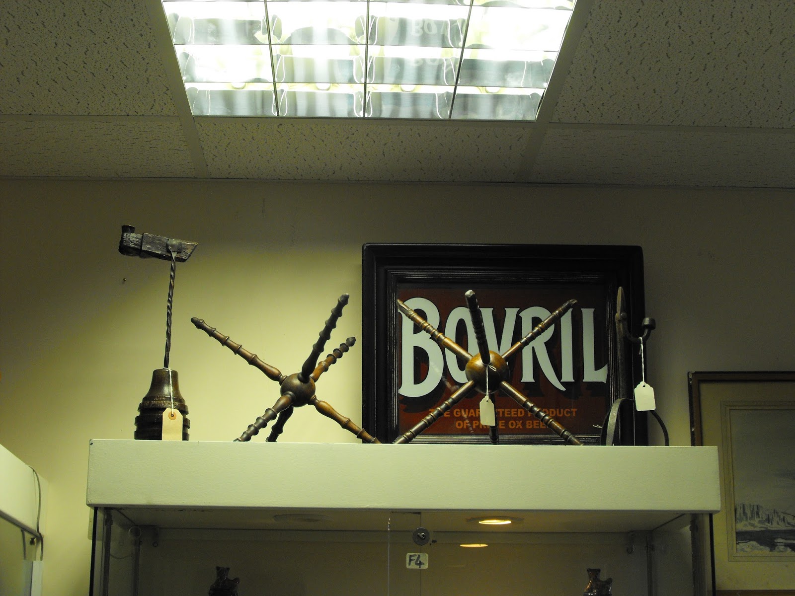 I have a soft spot for the rush-light holders shown at either end of this display case roof. The price was a little prohibitive though.
